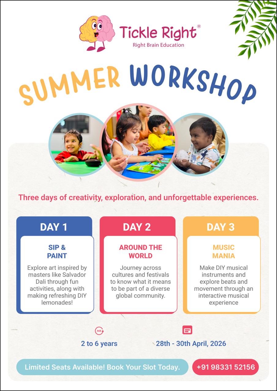 Tickle Right, holistically works on maximising the potential of young children through interactive activities designed in the form of games. The program works on enhancing skills such as photographic memory, musical appreciation, creative thinking, and audio-eidetic memory, to name a few