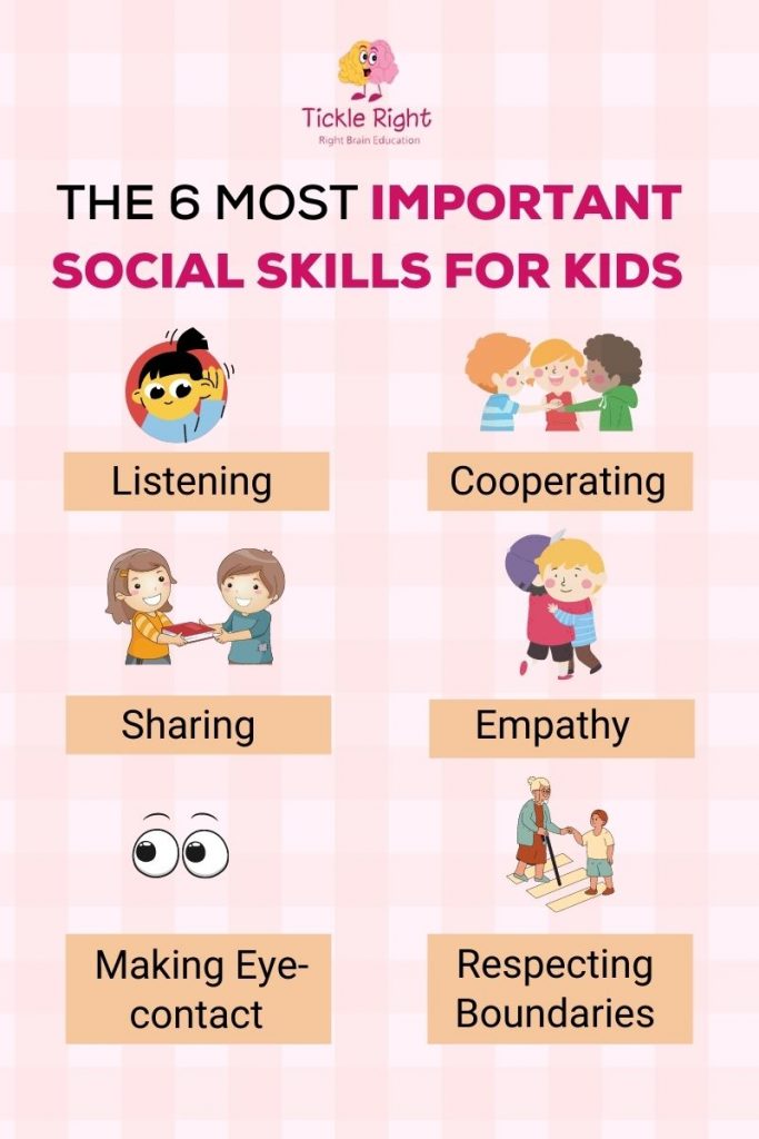 We at Tickle Right assert the crucial importance of social skills in our Right Brain Training Program. There are also several other skills associated with the understanding of social skills. That includes developing empathy, profusing confidence, inculcating a habit of sharing, & setting boundaries while communicating with peers around.